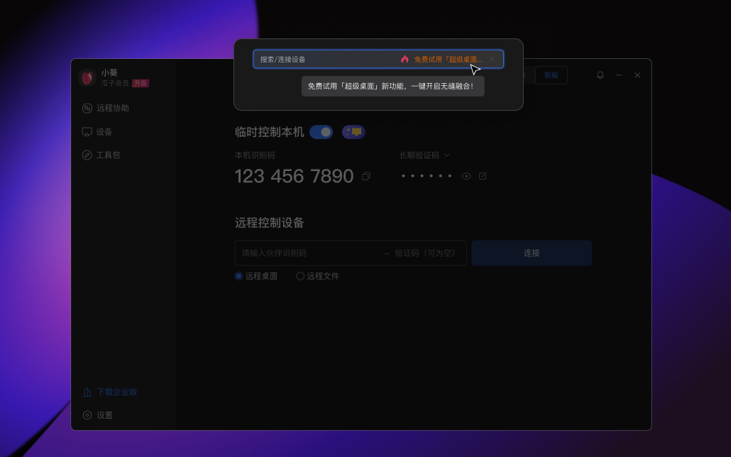 目前向日葵 16 全新推出的超级桌面功能,已面向瓜子会员及免费用户限时开放免费体验。大家只需搜索“贝锐向日葵”进入官网,下载、安装向日葵 16,登录后点击顶部文字链接即可一键领取两个月免费使用资格,抢先拥有远程控制新体验。