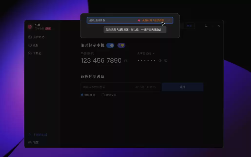 在跨平台兼容基础上,向日葵 16 进一步推出“超级桌面”创新功能,实现远程设备的无缝融合。此前,用户跨系统使用专业软件需依赖虚拟机或复杂兼容工具,而现在通过向日葵 16,只需在设备列表中一键点击,即可跨设备、跨系统启动远程桌面的任意应用。