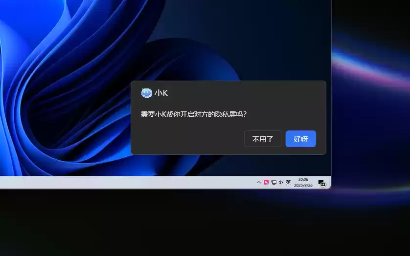 同时,“小 K ”具备环境感知与智能提示能力:检测到网络不佳时,会推荐适配当前带宽的桌面设置;发现被控设备 CPU 占用过高,会提醒排查异常进程;发起远控前,还会提示开启“隐私屏”,避免远程操作时泄露被控端敏感信息,兼顾效率与安全。