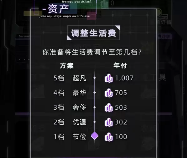 工作(薪资很棒)、零工(每年每个只能做一次,加属性)、投资(投信用点回股权通量)。