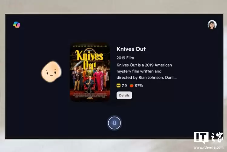 在电视屏幕上,Copilot 将以“友好的动画形象”呈现 —— 其设计灵感源自微软上月公布的乳白色 Copilot 视觉外观,但配色让其更接近拟人化的鹰嘴豆。这个米黄色的圆形形象会在屏幕上漂浮、弹跳,同时它的嘴巴会随着回应同步动起来。