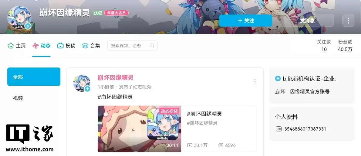 8 月 28 日消息,米哈游在哔哩哔哩、小红书、微博、微信公众号、米游社等多个平台开通了《崩坏》IP 游戏新作《崩坏:因缘精灵》官方账号,并于今天午间发布了首个视频。