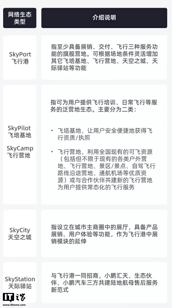 从小鹏汇天招募公告获悉,小鹏汇天渠道生态将包括多个类型的渠道网络生态,“旗舰店”名为 SkyPort 飞行港,需要至少具备展销、交付、飞行三种服务功能。