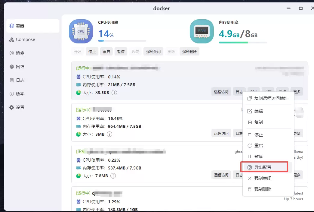 Docker 新增将配置导出为 Compose 格式,方便管理,在使用中赋予用户更多自由度,让 CPU 和内存性能满足多元化使用场景和需求。