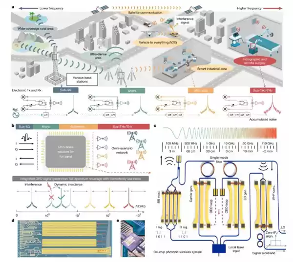 这项突破性技术采用薄膜铌酸锂光子材料配合全新架构方案,有效实现了跨频段的无线通信功能。8月27日,该研究成果已正式刊载于国际权威期刊《自然》。