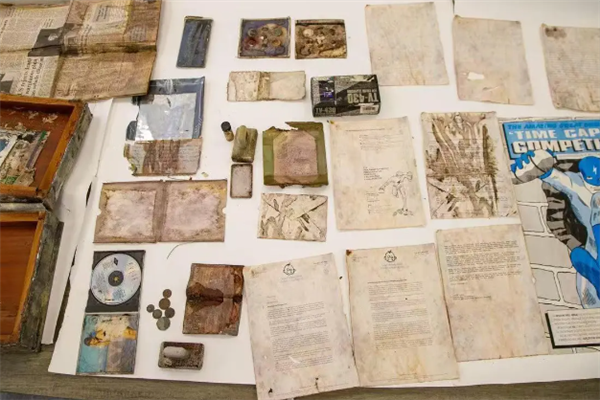 在所有藏品中,最令人瞩目的是澳大利亚歌手凯莉·米洛于1990年发行的专辑《爱的节奏》CD唱片。这件藏品出自当时年仅11岁、来自德文郡佩恩顿的大卫·沃森之手。这位小收藏家还特意挑选了一张再生纸和一本护照,一同放入时间胶囊中。