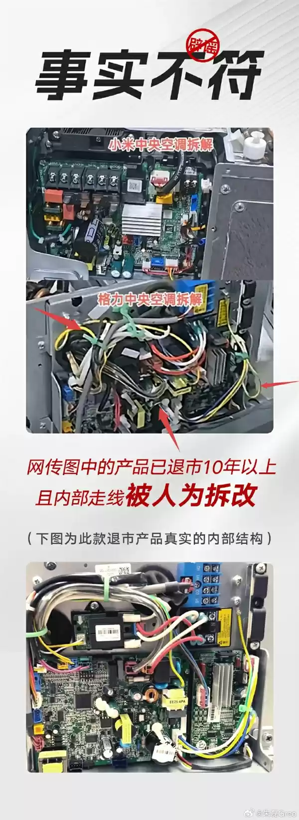 起因是,卢伟冰曾转发了一张所谓“小米中央空调”和“格力中央空调”的主板结构对比图显示,这是一张拉踩明显且经恶意处理的图片,却被广泛传播,刻意引导“格力做工粗糙”的印象。