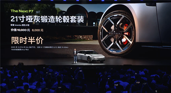 值得一提的是,全新小鹏P7起步就配有20英寸大尺寸轮圈,还提供21英寸锻造轮毂可选,并配有前245、后275鸳鸯胎,提升操控能力。