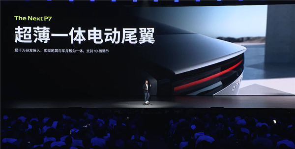 何小鹏特别介绍了这款车配备的电动尾翼,称投入了超千万元,让尾翼与车身融为一体,并支持10挡随速可调。