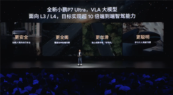 更为重磅的是,全新P7的辅助驾驶将全系Ultra,全系搭载三颗自研图灵AI芯片,有效算力全球第一,并进化到最新的VLA大模型,面向L3、L4辅助驾驶打造,目标实现超10被端到端智驾能力。