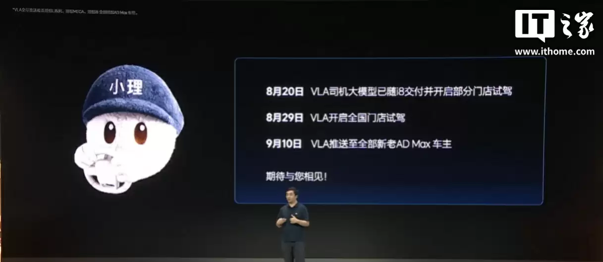 8 月 29 日消息,在 2025 年成都国际汽车展览会上,理想汽车分享了 VLA 司机大模型的最新进展与未来规划。8 月 20 日以来,VLA 司机大模型随理想 i8 同步开启用户交付,带来了全球首个基于 VLA 大模型的辅助驾驶,并将于 9 月 10 日开启全量推送。即日起,VLA 司机大模型启动全国门店试驾。