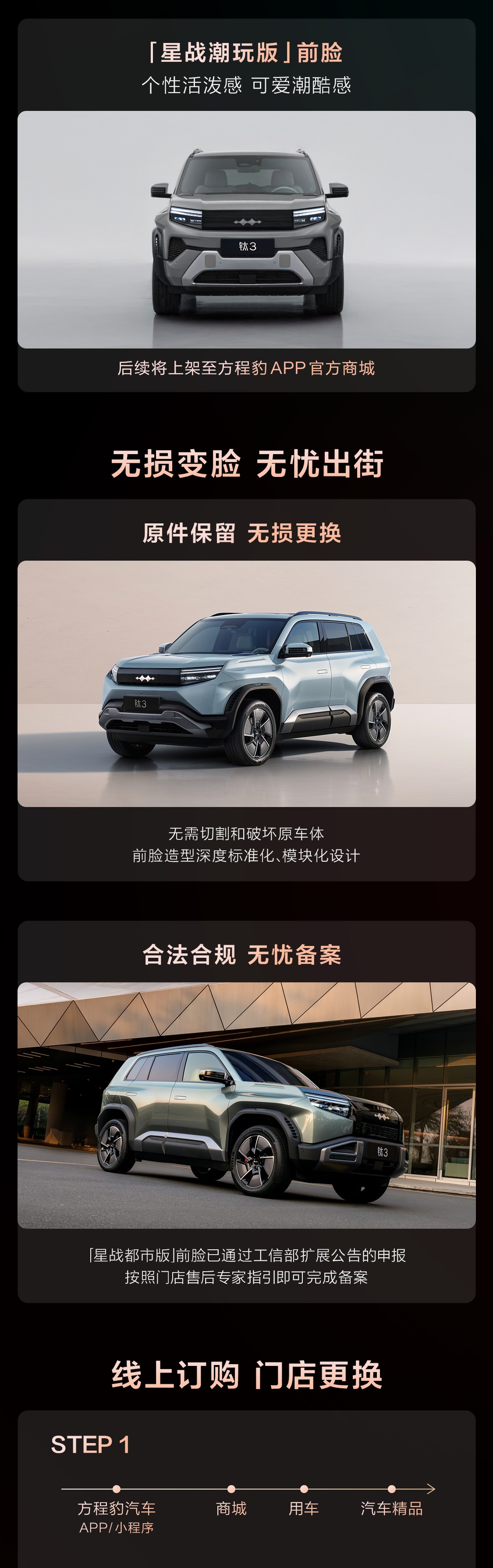 比亚迪方程豹3“变脸计划”:个性化前脸无损改装,合法合规上路