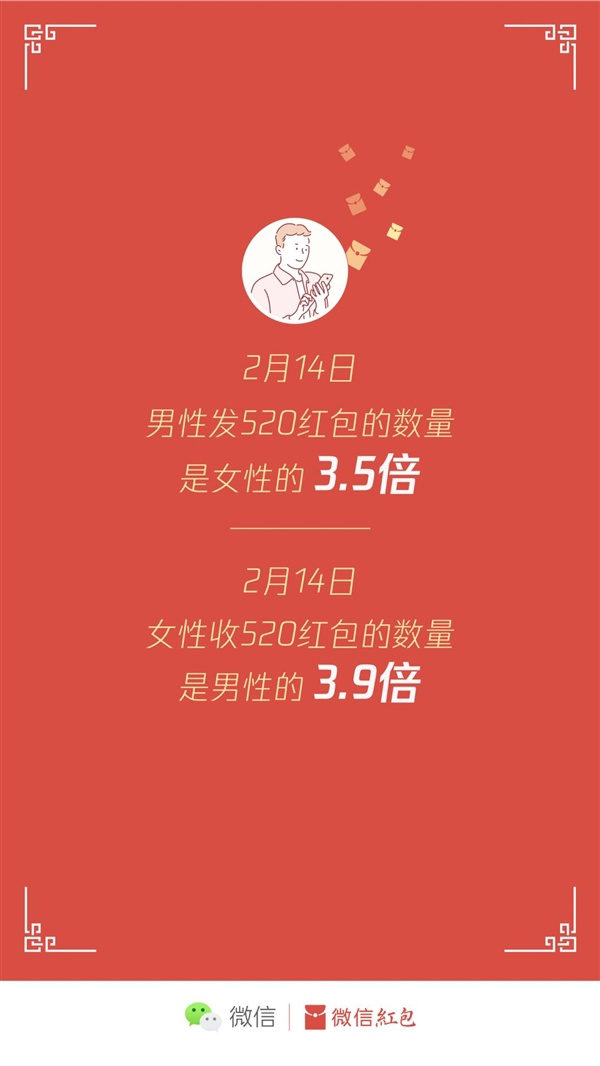 数据显示,男性发送520红包的数量约为女性的3.5倍,而女性接收520红包的数量则达到男性的3.9倍。更令人意外的是,当天发送的全部520红包中,有超过123万个最终未被领取。
