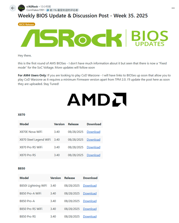 TH建议,推荐所有华擎AMD 800系列主板的用户更新3.40版本BIOS,并进一步观察效果。