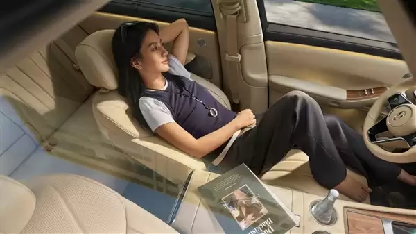 车内同样进行了全面升级:中控屏从15.6升级为16.1英寸,分辨率为3K;新增主驾零重力座椅,联动方向盘电动调节带来一键躺平新体验;后排用上吸顶娱乐屏;配备车载冷暖箱。