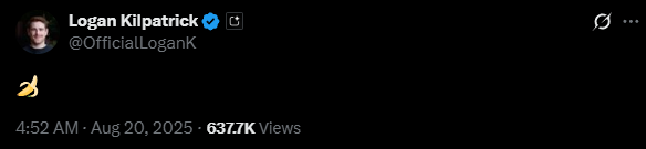 就在众人纷纷猜测新模型到底出身哪个高门大户的时候,谷歌 AI Studio 的产品 Leader 跳出来发了一个香蕉,暗戳戳地认领了 nano-banana。