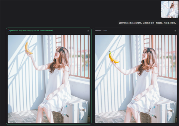 像是让人物手里加一根香蕉,右边 seededit 的手崩了,香蕉的颜色也过于鲜艳,和整体画风不搭,但左边基本挑不出啥毛病。