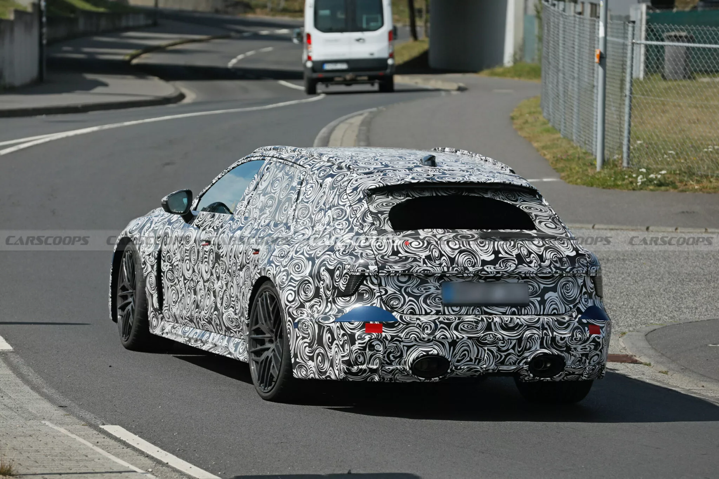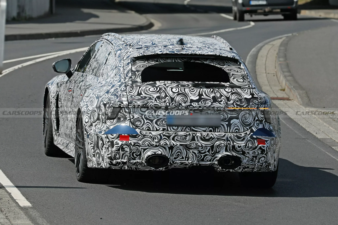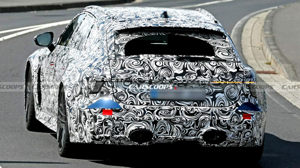 车尾部分,双出超大排气管与独特后保险杠、低调扩散器搭配,尾灯采用回旋镖造型,并由细长的贯穿式灯带连接。此外消息源称新车车身长度比现款增加 60 毫米。