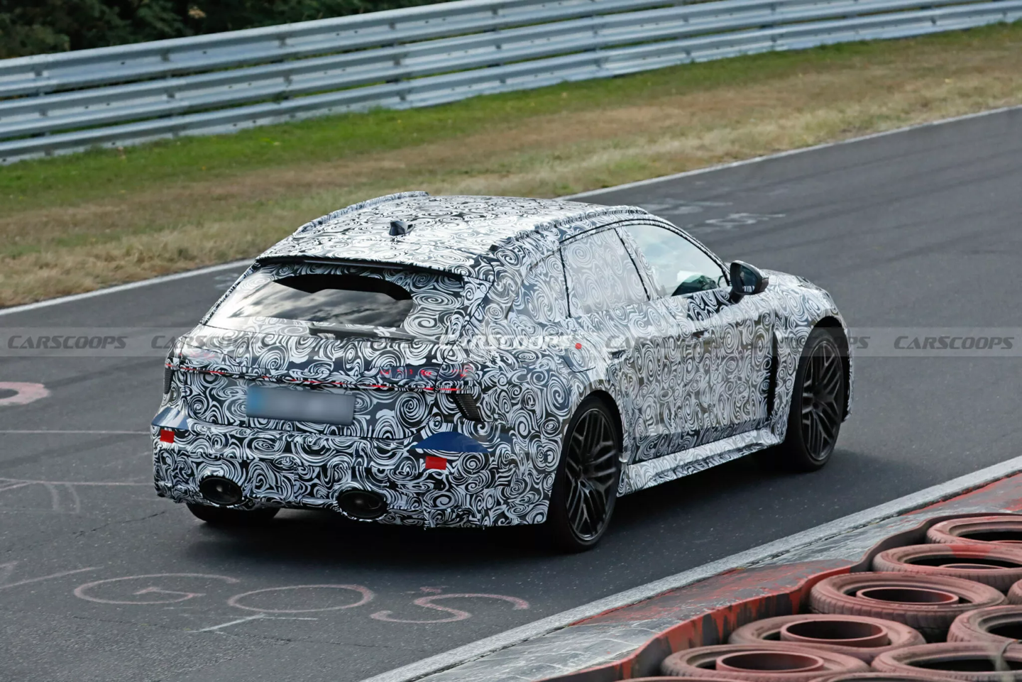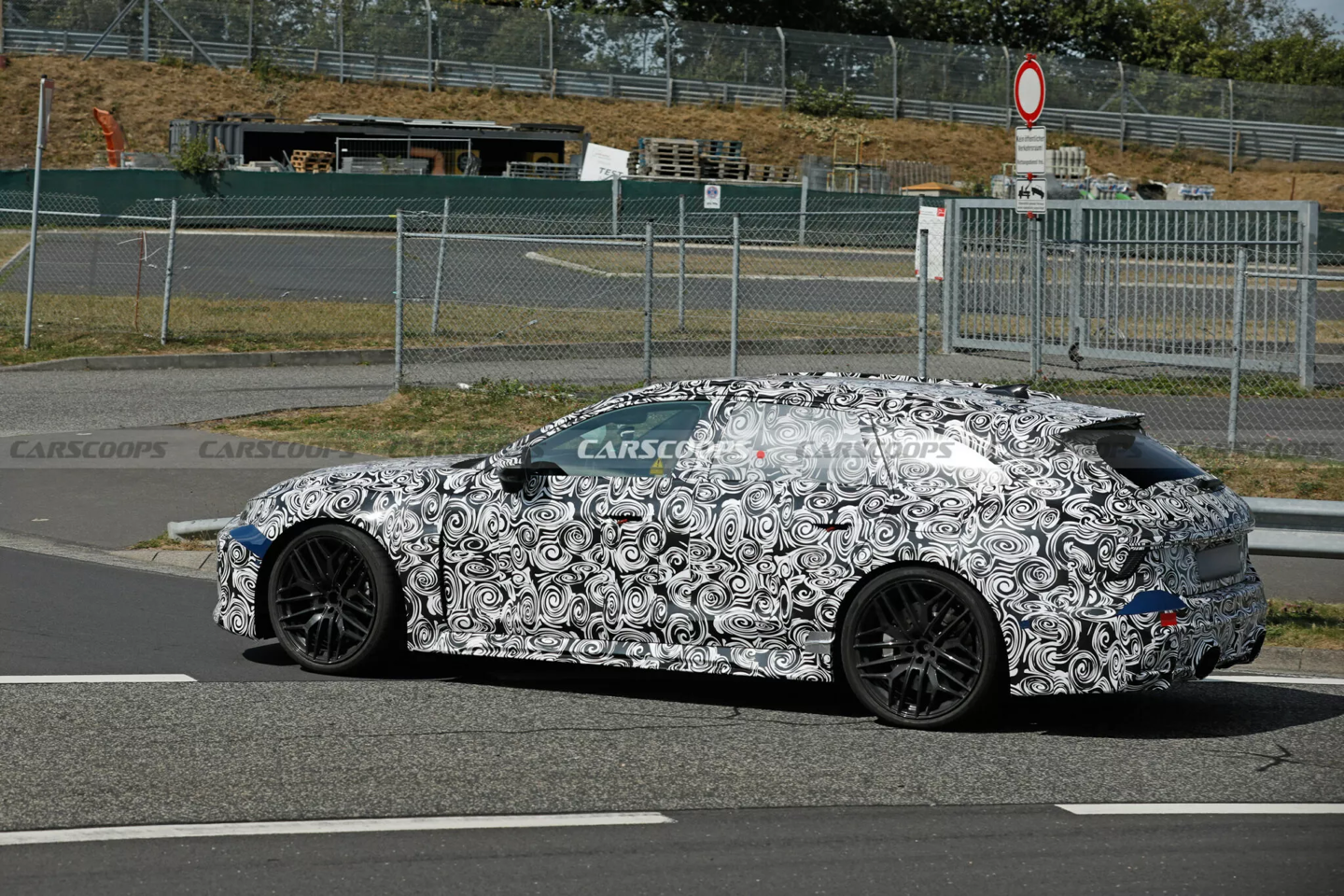8 月 30 日消息,汽车媒体 CarScoops 昨日(8 月 29 日)发布博文,分享了一组在德国纽博格林赛道抓拍的路测图,展示了正在测试的奥迪 2027 款 RS6 Avant 旅行车,透露该车采用全新插电式混合动力系统,最大输出有望超 700 马力。