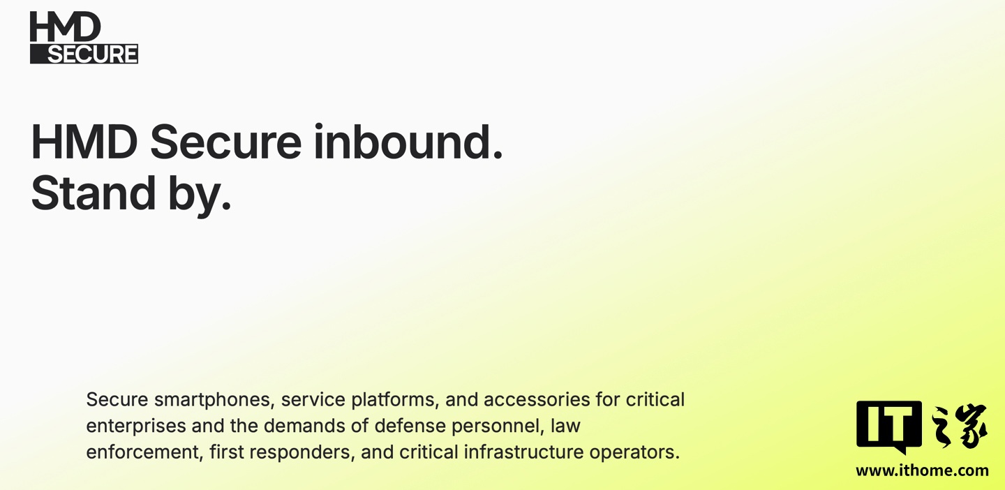 8 月 29 日消息,HMD Global 宣布成立全新安全业务部门 HMD Secure,该部门在芬兰埃斯波注册为“HMD Secure Oy”,主攻“安全、可持续、由欧洲本土制造的移动解决方案”,目标客户包括政府机构、关键基础设施部门、国防、急救系统以及监管行业。