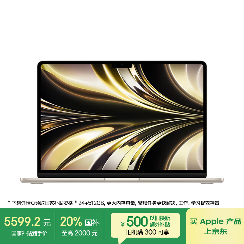 苹果MacBook Air 24+512G版京东直降5451元,轻薄本价格新低