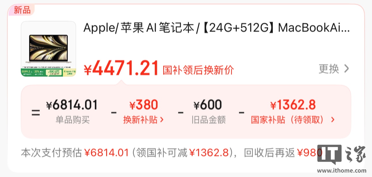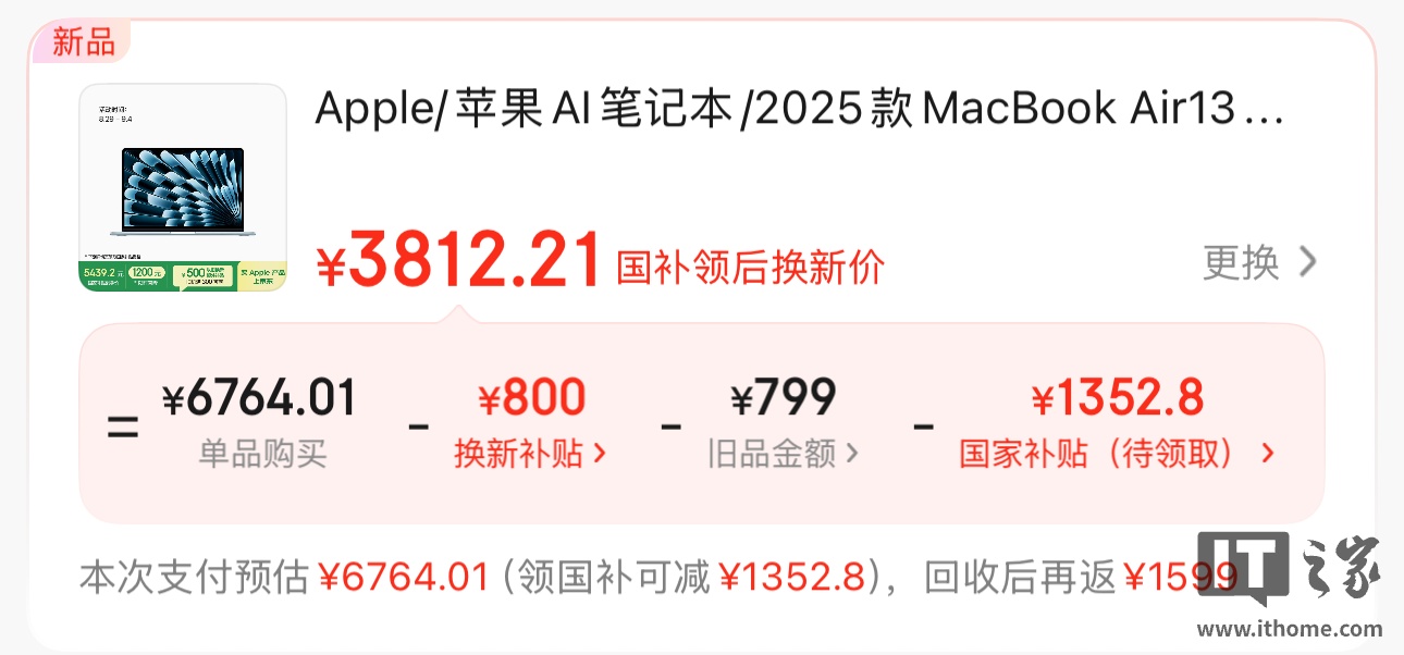 苹果 M4 芯片的 MacBook Air 新机型国行售价 7999 元起,今日国补后仅需 5439 元即可入手。