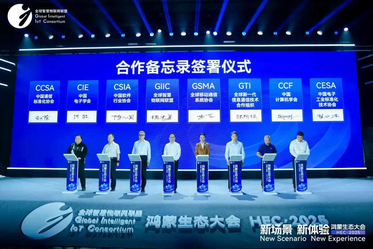 在两大核心组织签约之后,仪式迎来第二轮签约——全球移动通信系统协会(GSMA)、全球TD-LTE倡议组织(GTI)、中国电子学会(CIE)、中国计算机学会(CCF)、中国软件行业协会(CSIA)、中国通信标准化协会(CCSA)、中国电子工业标准化协会(CESA)与全球智慧物联网联盟(GIIC)共同签署合作备忘录。来自国内外的多元力量集结,涵盖国际通信标准组织、国内权威行业协会及标准化机构,为鸿蒙生态注入全方位推动力量,促进生态在更广阔领域的规范发展与落地应用。