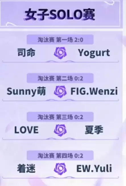 淘汰赛阶段,大众赛道选手与专业赛道选手之间的实力差距初现端倪。四场淘汰赛分别是司命对阵 YOGURT、SUNNY 萌对阵 FIG.WENZI、LOVE 对阵夏季以及着迷对阵 EW.YULI。专业赛道的选手凭借出色的打法战略和专业的训练,在比赛中展现出明显优势。司命、FIG.WENZI、夏季、EW.YULI 分别以 2-0 的总比分干净利落地击败大众赛道的选手,晋级半决赛。