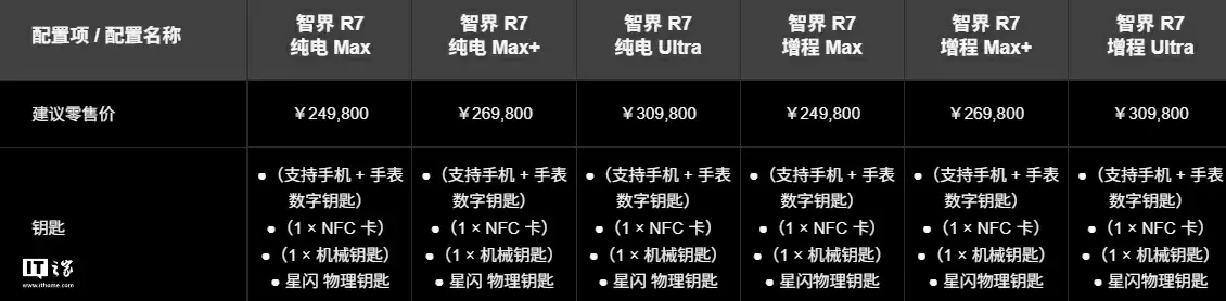 注意到,鸿蒙智行官网显示,新款智界 R7、新 S7 汽车均全系标配星闪物理钥匙、NFC 卡、机械钥匙,同时支持手表 + 手机数字钥匙。