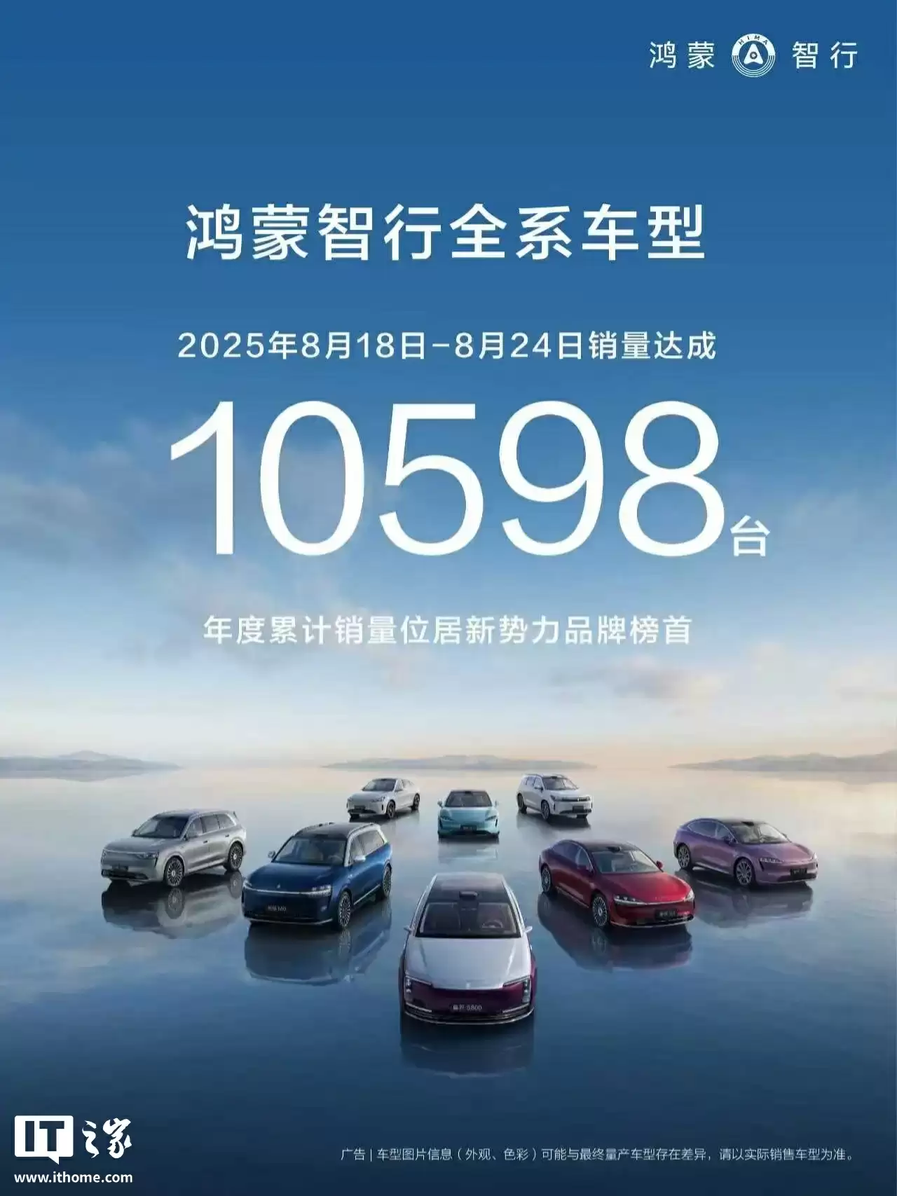 参考鸿蒙智行官方在8月27日公布的数据,8月18日至24日期间该品牌全系车型单周销量达10598台,2025年累计销量位居新势力品牌首位。正如博主@我鸿所说:"问界双王牌持续领跑,问界M9稳居50万级市场榜首,问界M8则在40万级市场独占鳌头。"