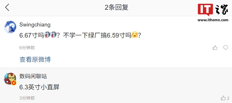 注意到,博主还在评论区透露了新机为 6.3 英寸小直屏设计方案。