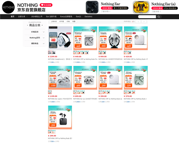 Nothing 京东自营店仅有耳机产品在售