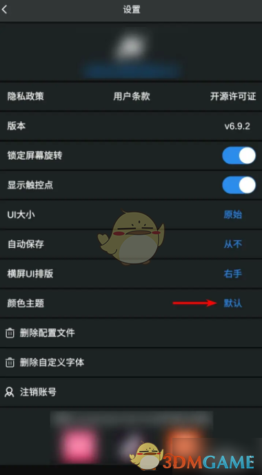 2、进入到设置页面后,点击颜色主题右边的蓝字。