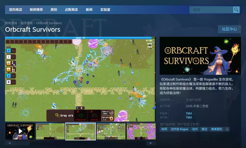 目前推荐前往Steam商店页面下载:https://store.steampowered.com/app/3327240/Orbcraft_Survivors/