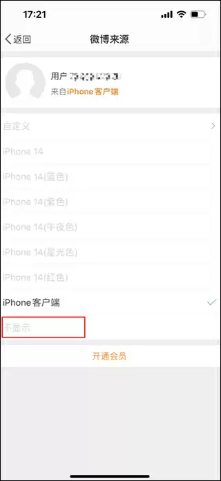 5、最后在微博来源设置中,选择"不显示"就能完美隐藏你的设备信息啦。