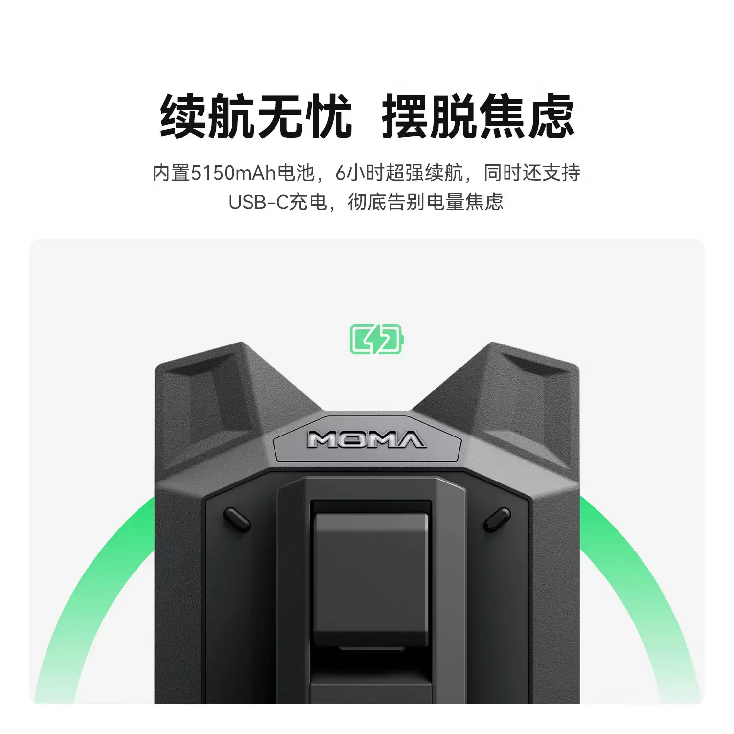 续航方面,猛玛微影内置 5150mAh 电池,标称 6 小时续航,同时还支持 USB-C 充电,还可以为 iPhone 反向供电。