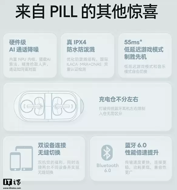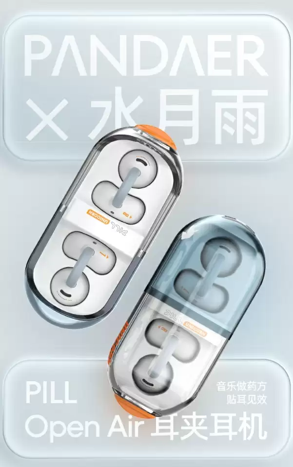 水月雨 X 魅族 PANDAER 联名的“PILL 音乐胶囊”耳夹式耳机 7 月 17 日上市,相比标准版的“PILL 音乐胶囊”主要更新了充电盒配色、耳机本体新增“PANDAER”品牌标志。