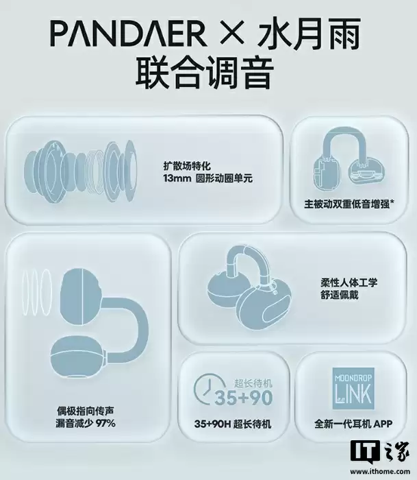 据 PANDAER 产品经理介绍,他们在经过用户需求整合与前期体验后,认为耳夹式 OWS 式无线耳机中,更接近智能穿戴的理想形态。为此他们和专注 Hi-Fi 音频硬件设计的水月雨“一拍即合”,双方均参与了这款耳机的声学调试以及算法等,让各自的优势资源得到整合。