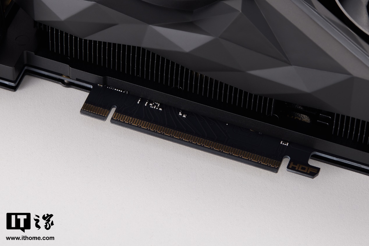 影驰 RTX 5070 Ti HOF OC LAB 黑魂 X 显卡采用纯黑涂装外壳,包括风扇、磁吸灯带配件和外壳,甚至连内部散热组件、PCB 和显卡金手指外延部分都做了彻底黑化处理,一体性非常强。