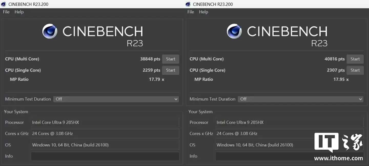 CineBench R23 也是一样的情况: