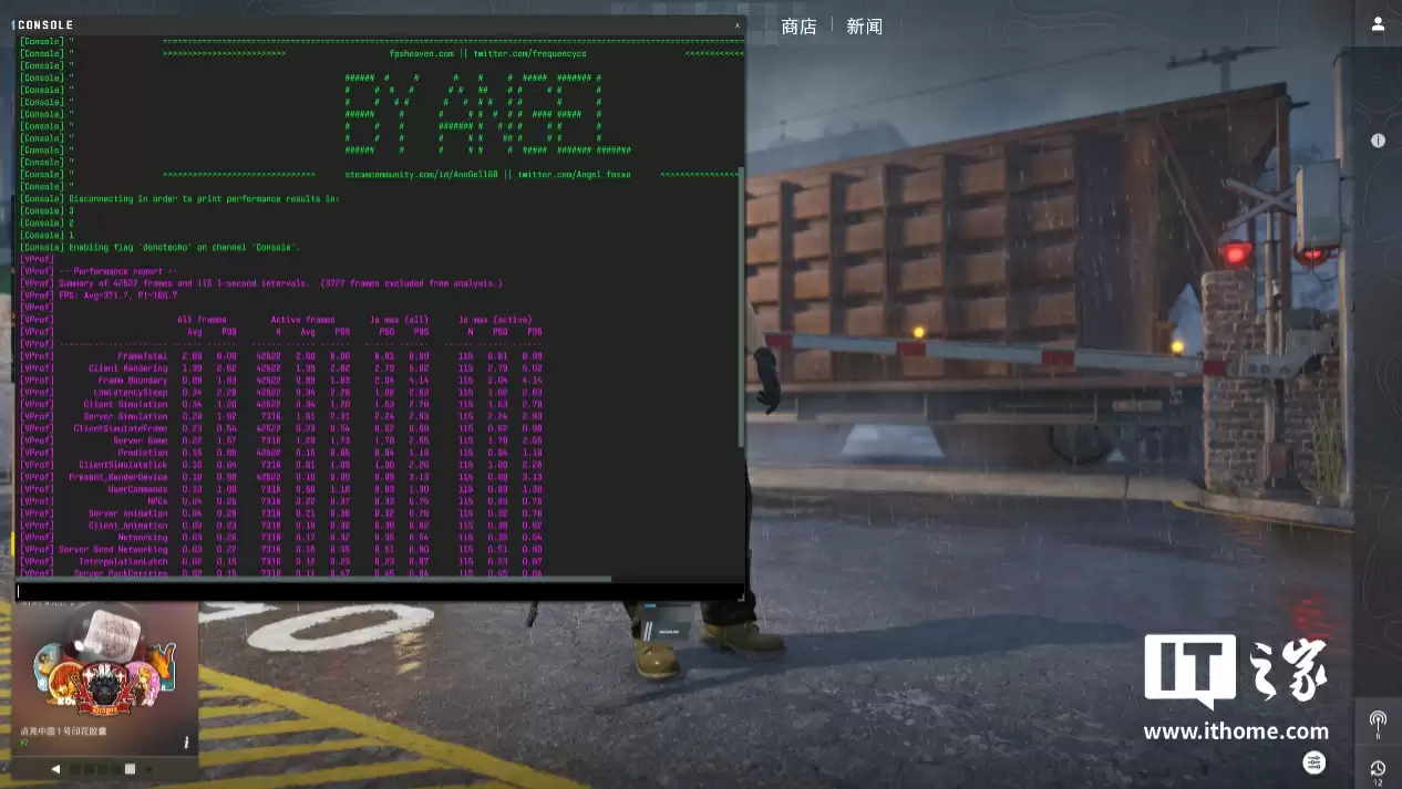 在 2K 高画质下游戏平均帧数 371 帧,1% Low 帧 166 帧;