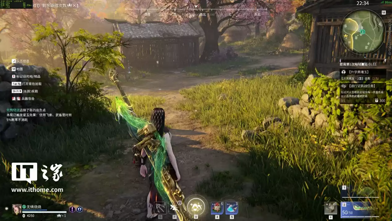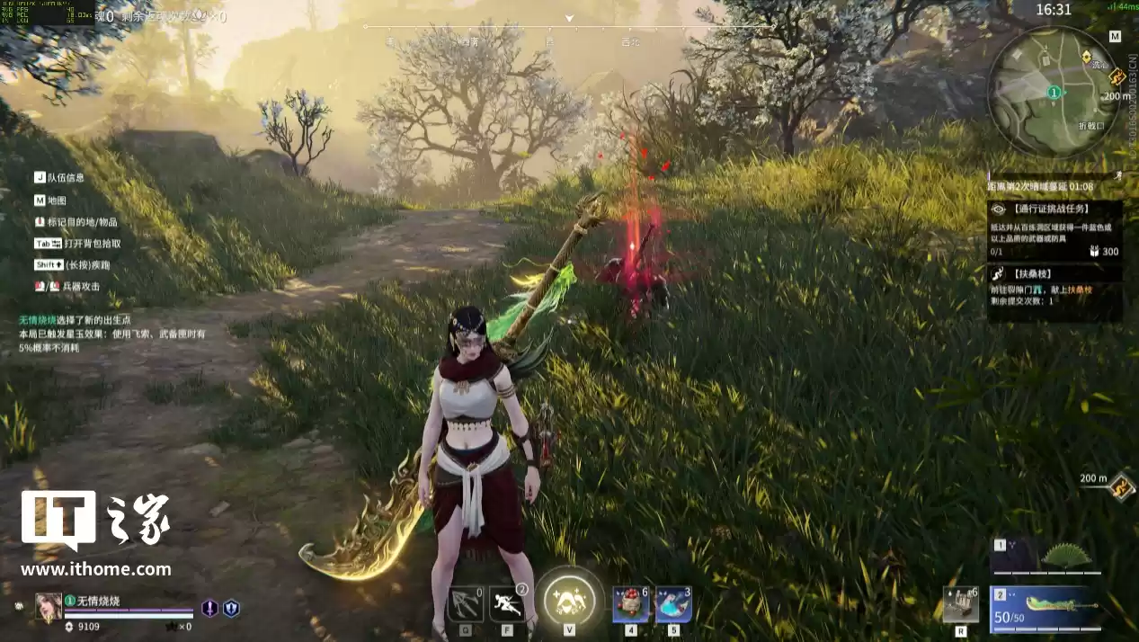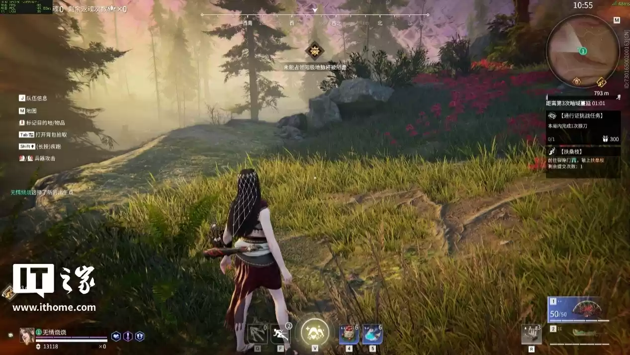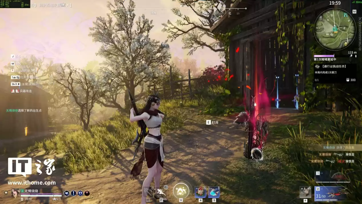 《永劫无间》这款游戏比较特殊,虽然类型上是一块在线竞技类网游,但它也是适配 NVIDIA 技术最积极的游戏之一。这次我们进行 2 轮对比,第一轮我们开启光线追踪选项,以全高画质选项 + DLSS 质量 + 2x 帧生成,来一局人机比赛: