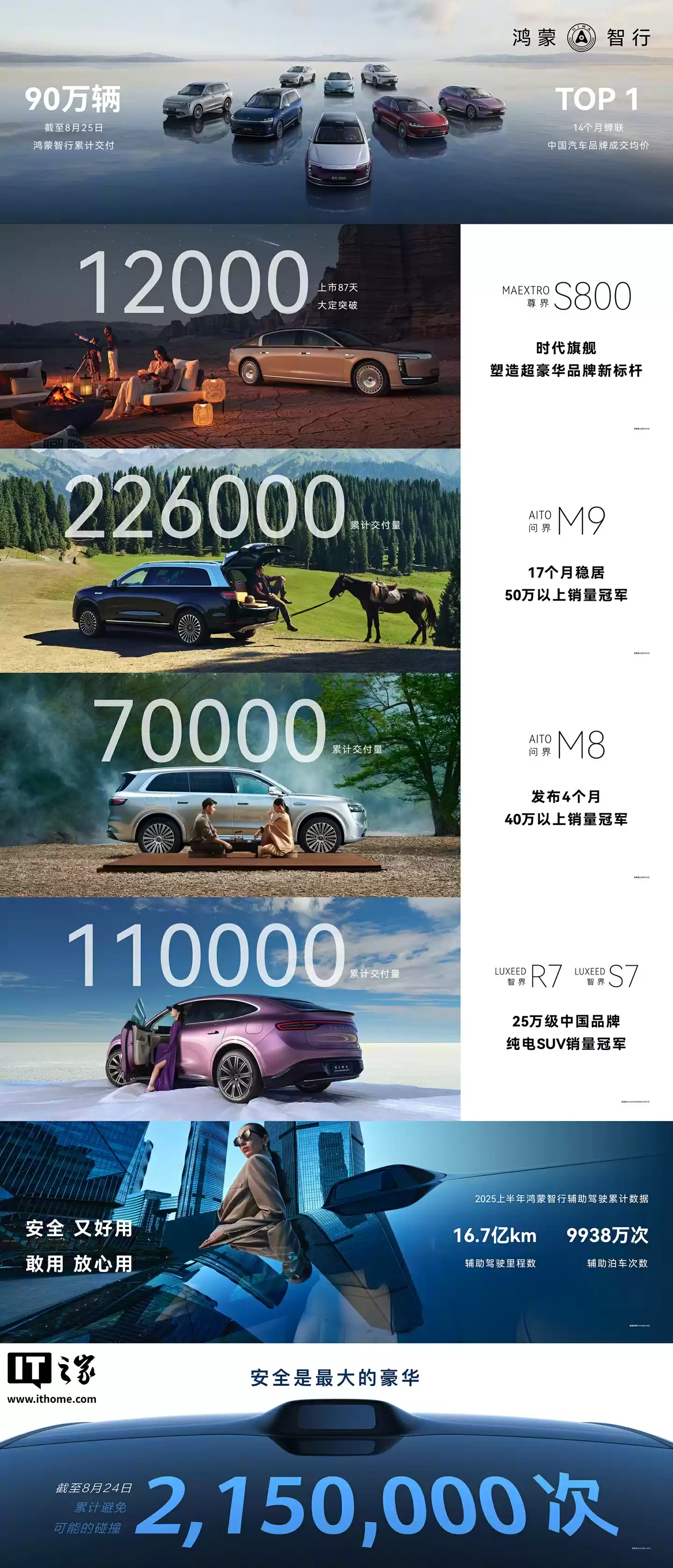 - 鸿蒙智行智界R7、S7系列累计交付量110000台,荣获25万级别中国品牌纯电SUV销量冠军