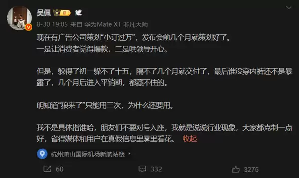 事情的导火索,是前几天资深汽车媒体人吴佩在自己的微博上发了这样一条微博。