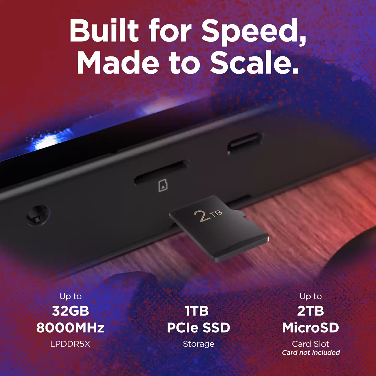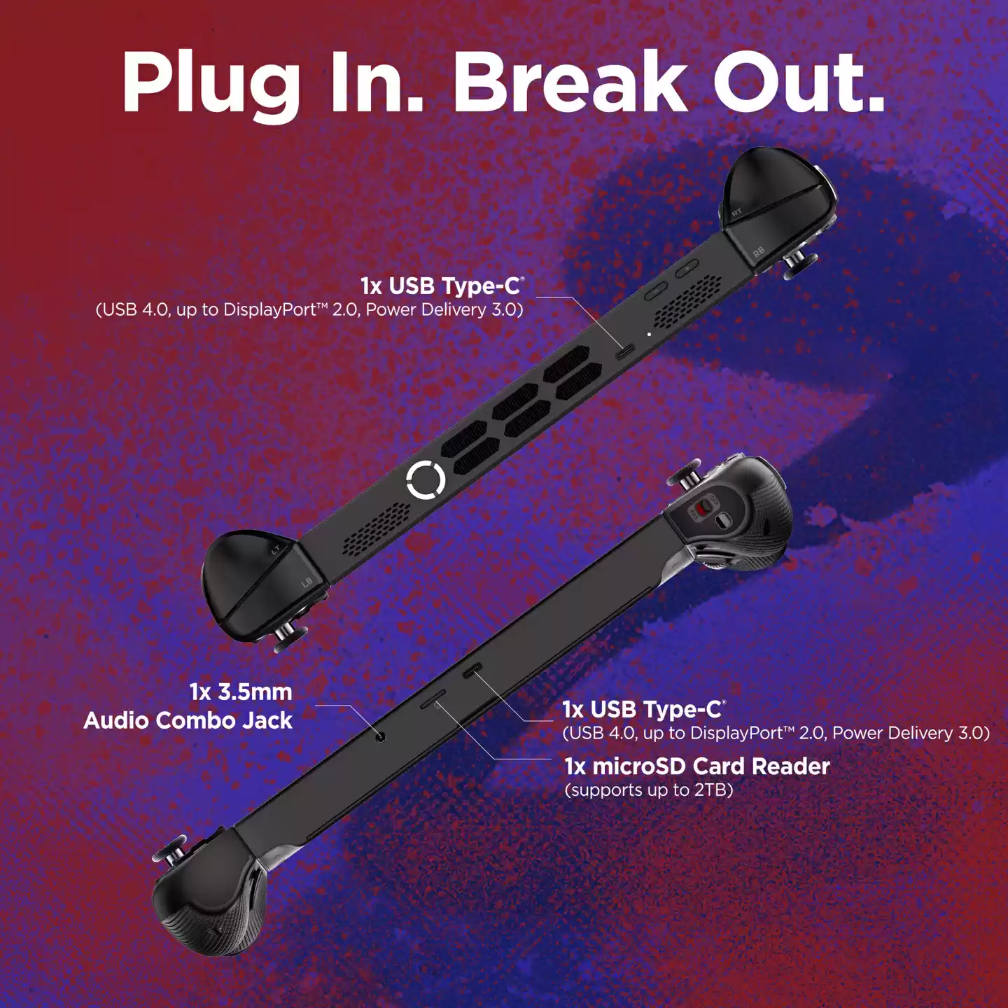 芯片方面,该掌机将提供 AMD Ryzen Z2 和 Ryzen Z2 Extreme 两种处理器选项,支持最高 2TB 的 MicroSD 扩展,并配备双 USB4 Type-C 接口。
