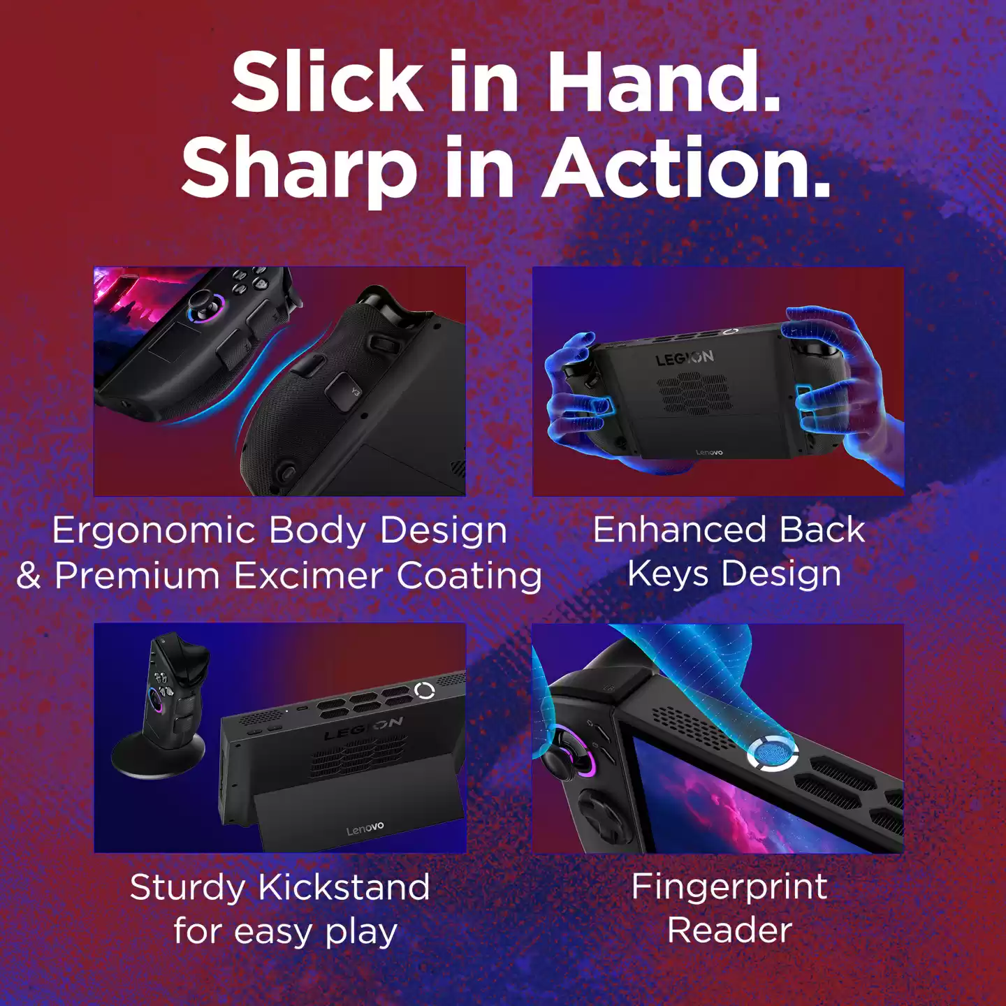 散热方面,该掌机采用联想 Legion Coldfront 散热技术,配备更大尺寸风扇与扩大的进出风口,用户也能手动控制风扇转速。