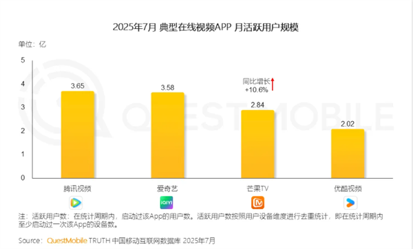 值得注意的是,第三名并非优酷视频,而是芒果TV,其月活用户为2.84亿;优酷视频则以2.02亿月活位居第四,与前三甲存在一定差距。