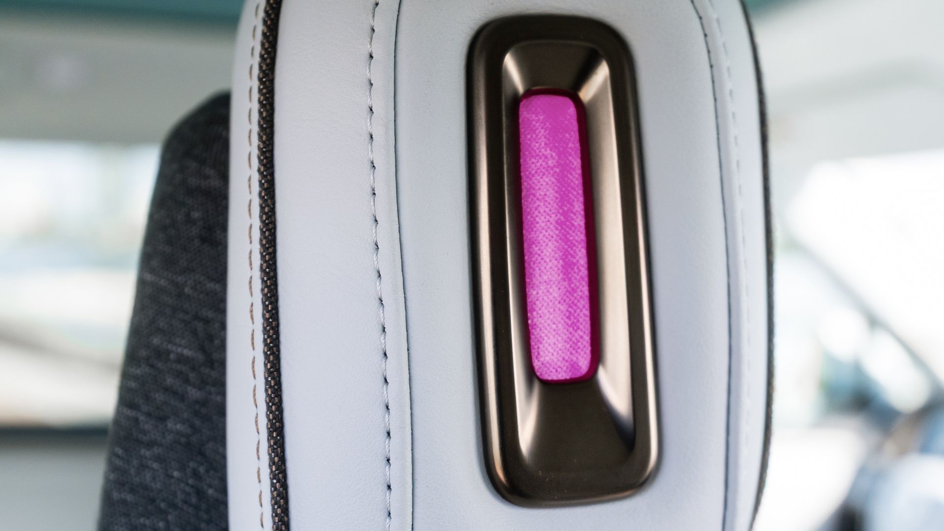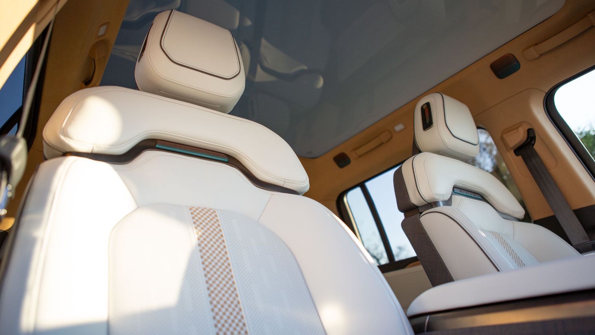 车内采用 Ocean Coast 风格内饰,头枕点缀粉色装饰,并搭配带蓝白图案和青绿色边框的特别脚垫。