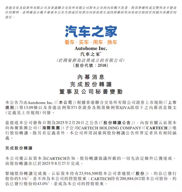 虽然中国平安旗下的云辰资本还占了 5.1% 的股份和一个董事会席位,但这波操作下来,汽车之家的 CEO 换成了海尔系,相信不久后就会有大动作。