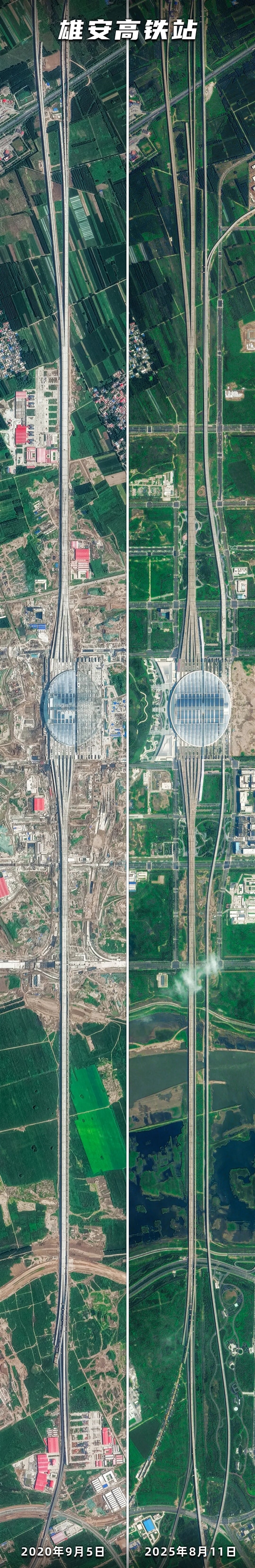 雄安新区5年巨变:从农田到高铁枢纽的卫星影像对比